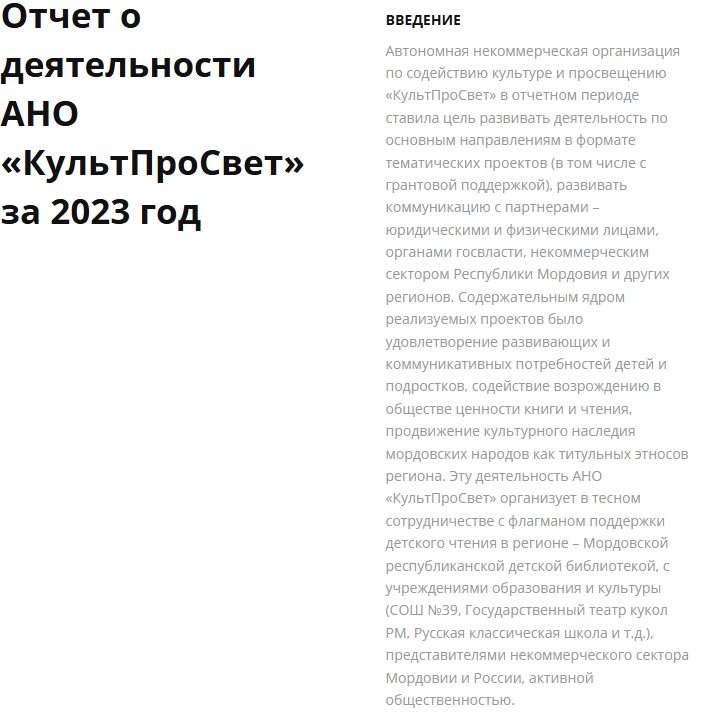 Отчет о деятельности АНО «КультПроСвет» за 2023 год