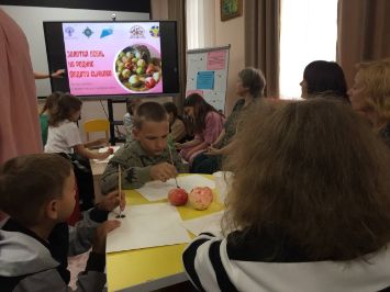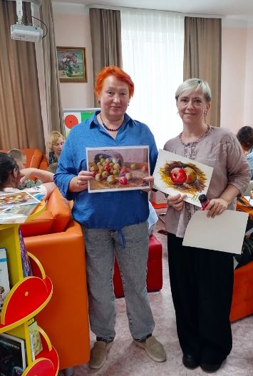 Участники мастер-класса под руководством художницы написали фрагмент с картины Ф. Сычкова «Алма-атинские яблоки». Натурой послужили и первые сорванные мордовские яблоки.